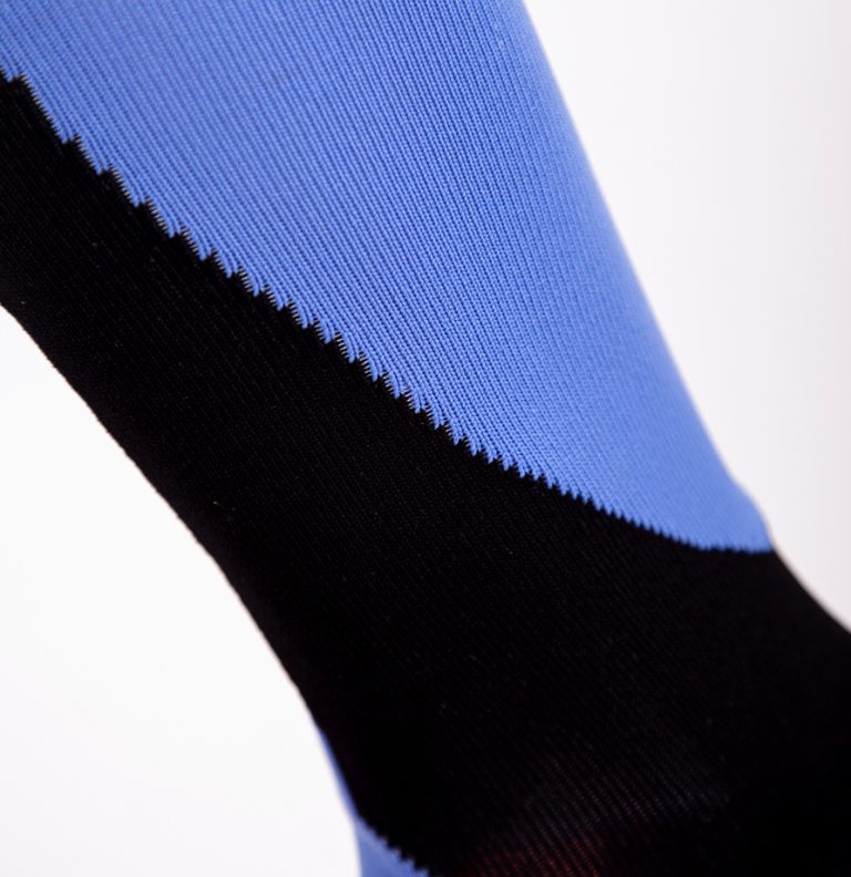 Calcetín deportivo con mucho estilo, diseño con compresión en el puente, ergonómico que absorbe y reduce la fricción siendo cómodos con la máxima proteccion para tu pie. El arco de ajuste perfecto, sin costuras para la unión de los dedos, con protectores frontales. Talon y puntera reforzados para proteger de zonas de mayor fricción. Vocke te acompaña y te cuida. Composición: Jacquard material 98% F70D-Nylon y 2% de L3070 Lycra. Color: Azul + Negro
